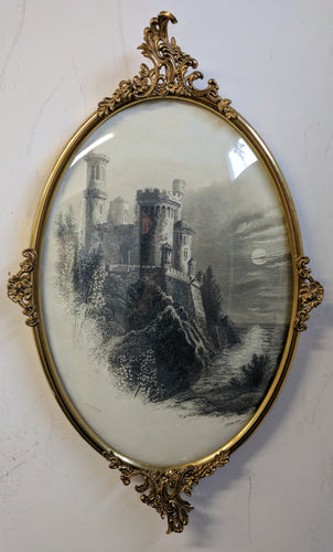 5129 Gold Oval Framed Picture of a Castle on the Sea