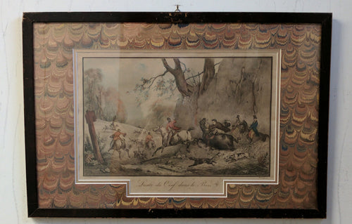 5140 Print of French Hunting Scene "The Hunt in the Woods"